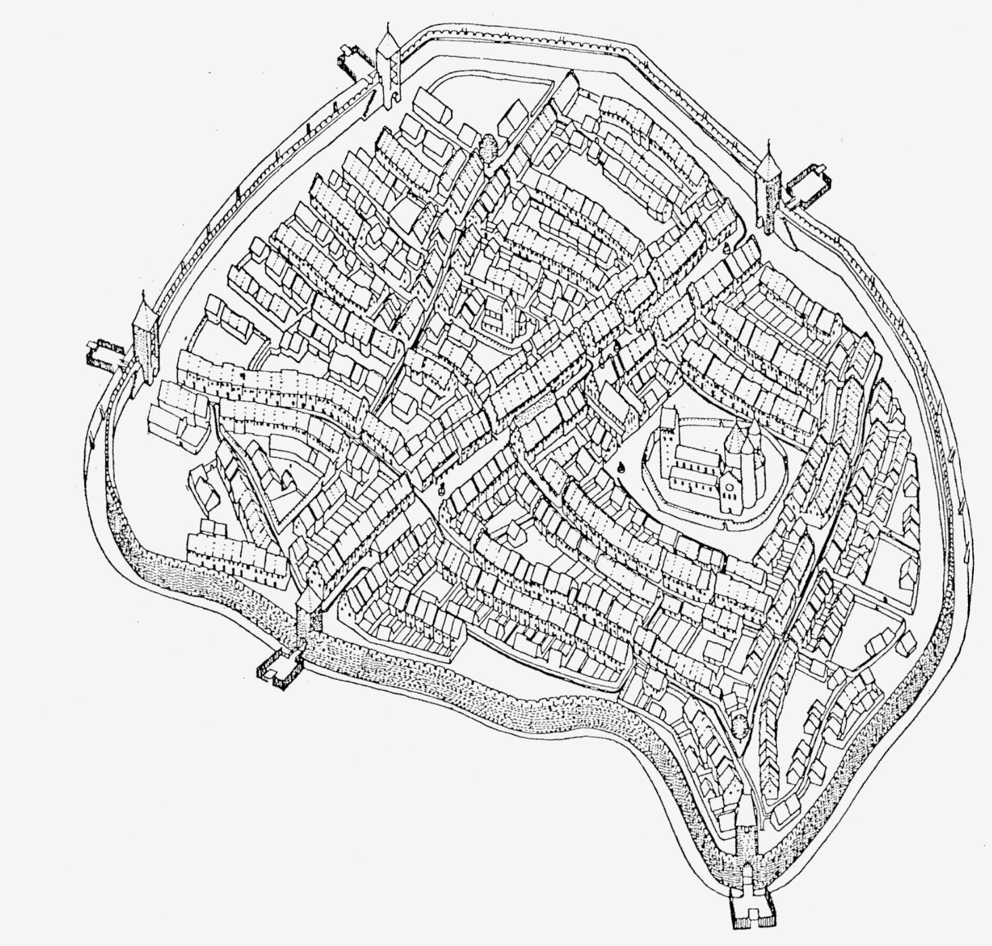 Axonometric view of the town of Freiburg.