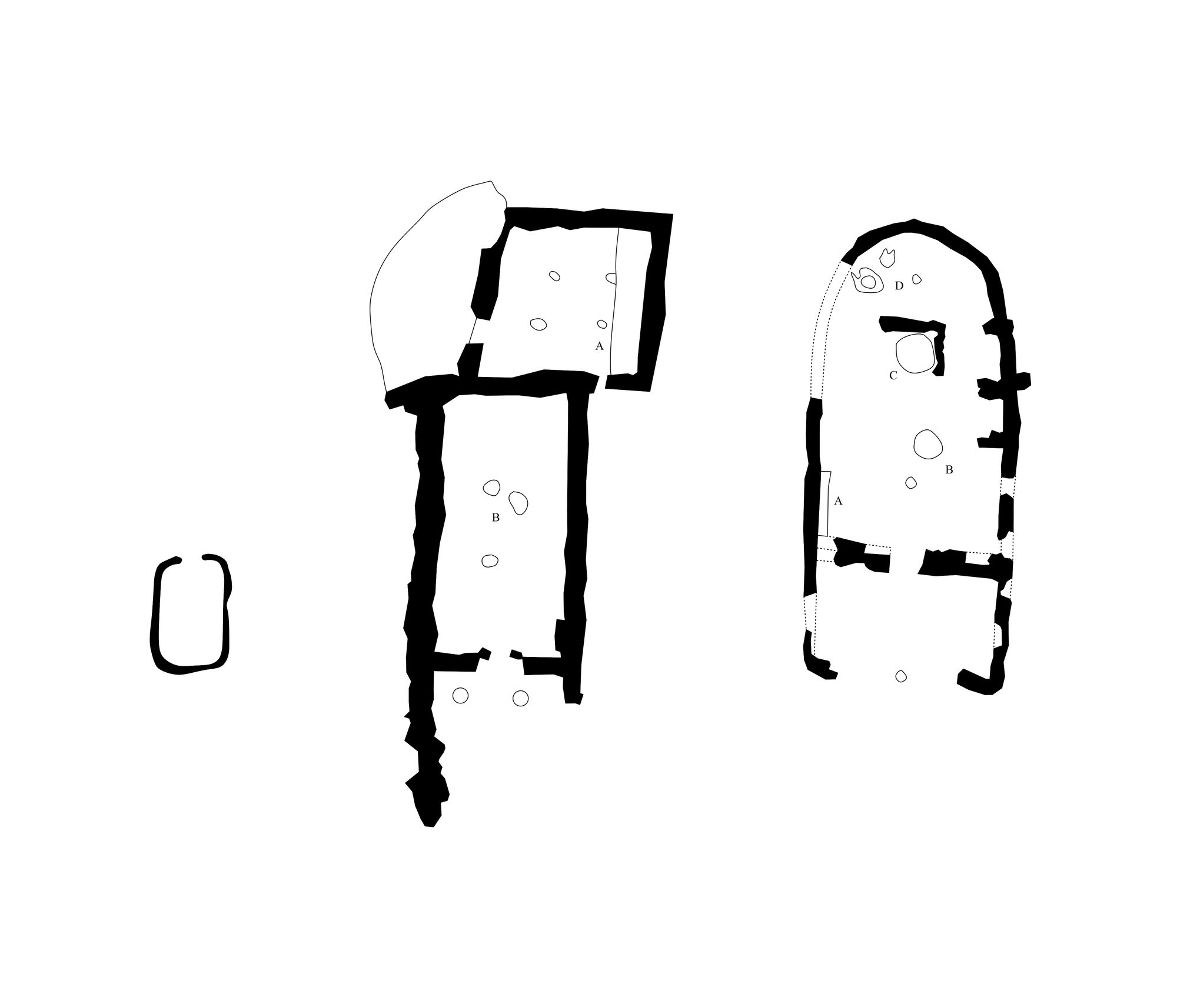 Plans of Early Iron Age single-room and two-room houses, Greece.