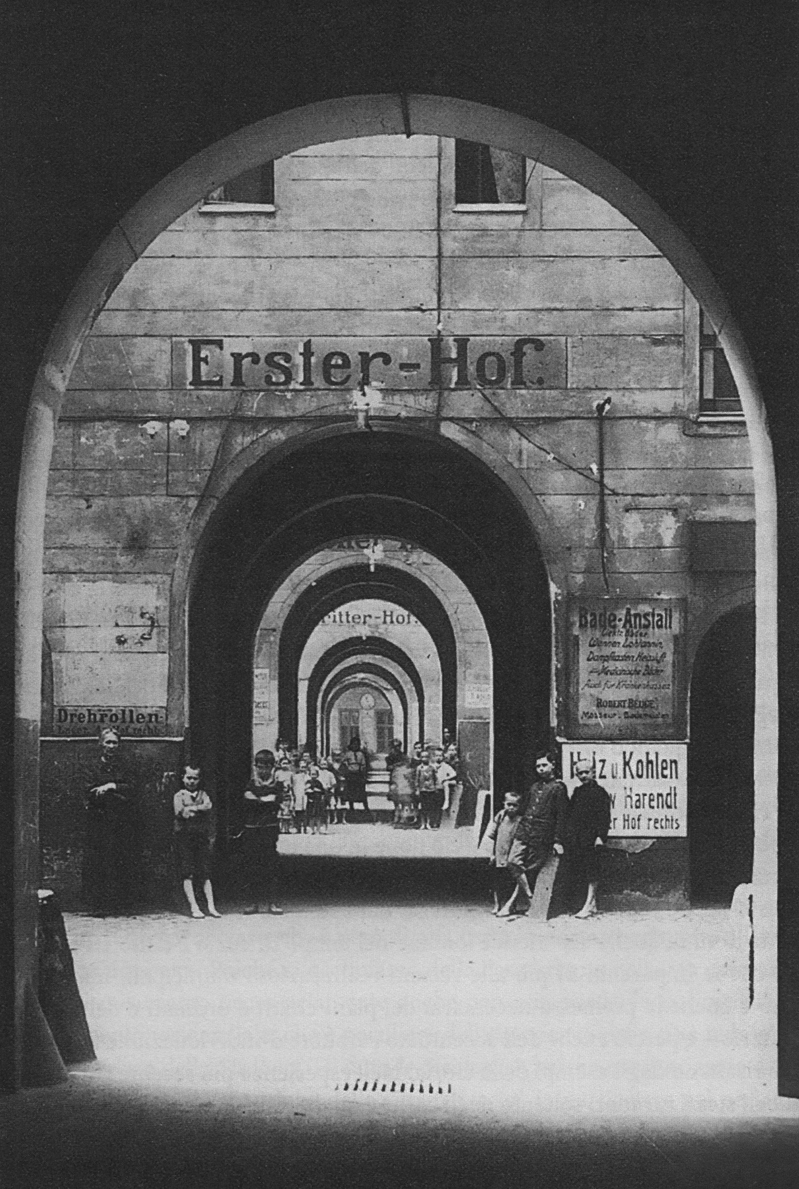 As already said, the Hof derived from the idea of collective life, and the history of the Wohnhöfe originated in the experiences of urban communities based on corporate bonds (like those of artisan merchants) or on spiritual or confessional communities. In places like Flanders and Germany, these last examples played a significant role in the form of the city, comparable to the role of the system of convents and hospitals in Italian cities. In this sense, the Hof often had the same connotations as the building complexes that provided welfare services in the city and were supported by the merchant bourgeoisie, like the béguinages that we still find in Bruges, Ghent, and Amsterdam, or the famous Fuggerei in Augsburg. These examples clearly showed the character of segregation of the Höfe (like the very large Judenhof in Berlin). In certain conditions, this segregation seems to determine a fixed connotation of the Wohnhof, even in the most recent times, such as the ghettos of modern cities, for example, or the workers’ districts built during the two world wars, like the Viennese Höfe (such as the workers’ stronghold of the Karl-Marx-Hof).