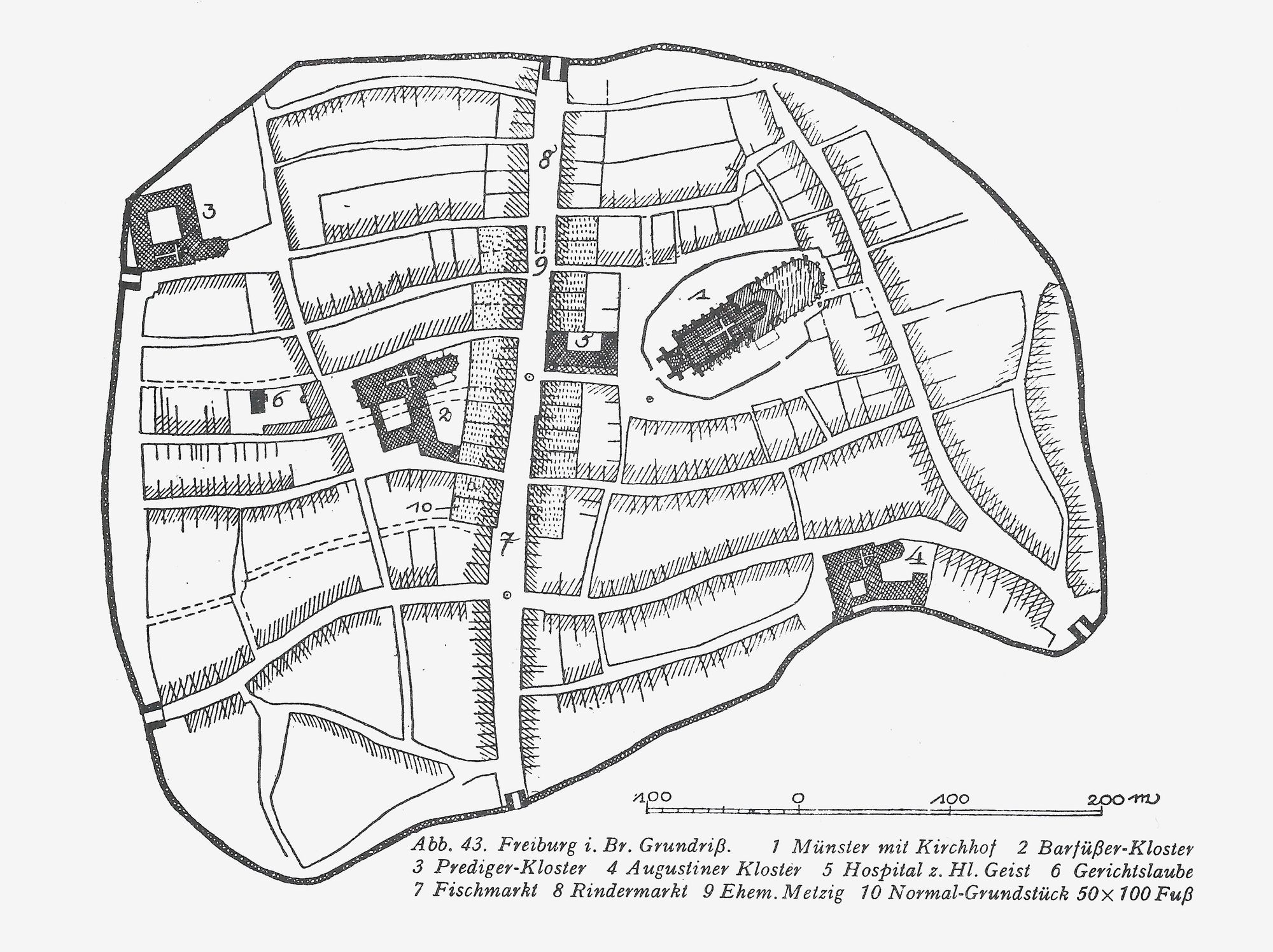 Plan of the medieval town of Freiburg.