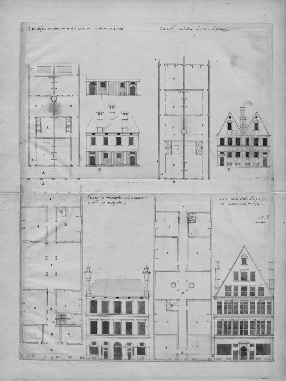 Plate XLIX: House of a better-off artisan with an upper floor (G); House of a better-off artisan in the French manner (H); Dwelling of a rich artisan or good merchant or citizen (I); Dwelling of a rich artisan or good merchant or citizen in the French manner (J).