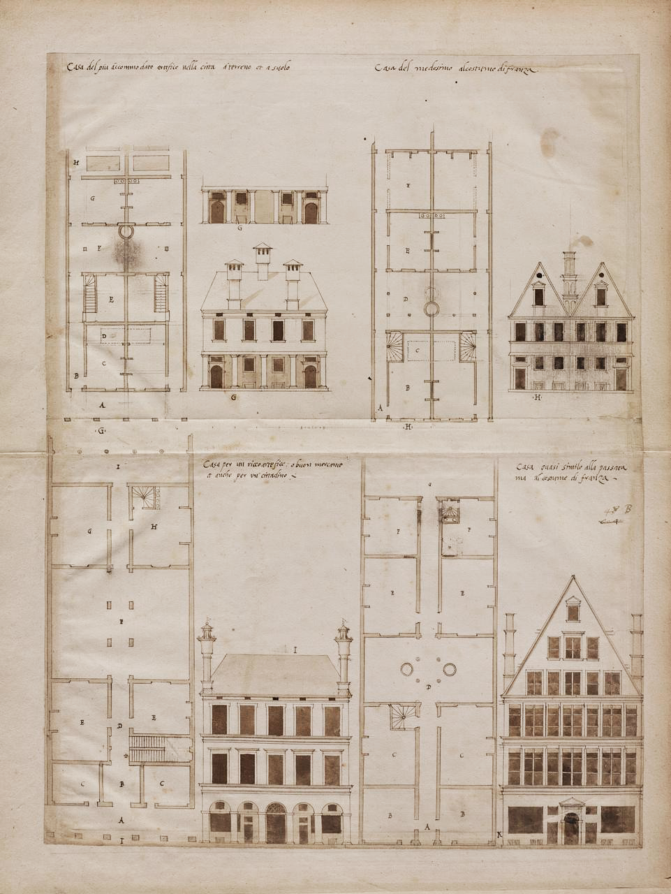 Plate L: House for a citizen or merchant or similar person (L); House for a citizen or merchant or similar person in the French manner (M).