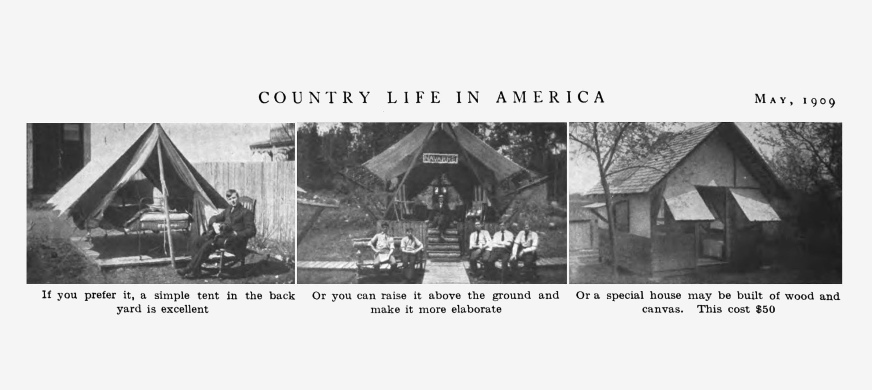 Outdoor sleeping tents; from C. M. D’Enville, “Sleeping Outdoors for Health: Outdoor Sleeping for the Well Man,” Country Life in America, 16 (May 1909).